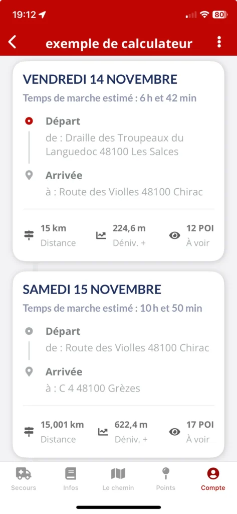 + Après s'être inscrit on peut utiliser le calculateur d'étape et réaliser un road book personnel