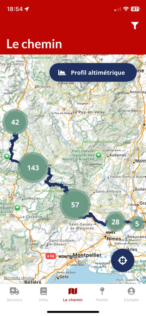 + Le chemin en entier Les nombres représentent les points expliqués sur la carte