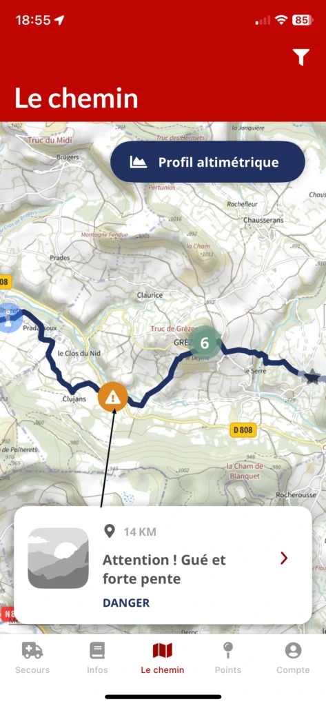 + Enfin, en créant un compte gratuit vous pourrez créer votre road book personnel. Il comprend le point de départ, les choses à voir en chemin, les obstacles et risques, le kilométrage, la dénivelée et votre point d'arrivée.