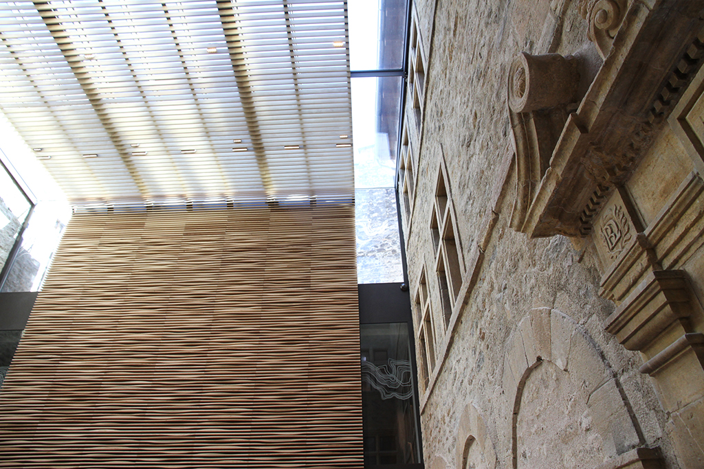 La lumineuse cour intérieure du Musée du Gévaudan où s'entremêlent témoignages du passé et expressions de la modernité
