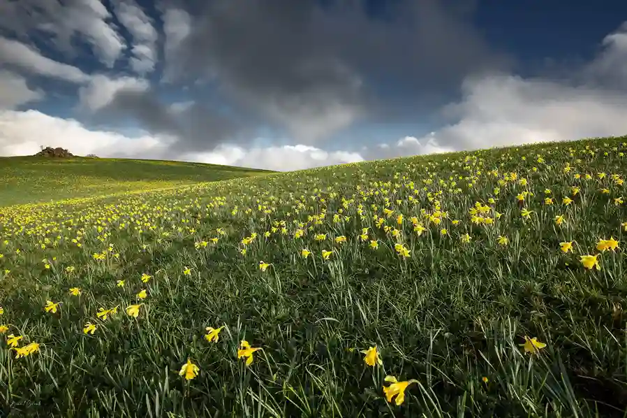 Sur ces plateaux balayés par les vents, marcher devient un exercice de contemplation. D’estives en drailles, le chemin serpente à travers des prairies infinies, où paissent les emblématiques vaches Aubrac. Regardez les, elle sont maquillées ! Au printemps, les pâturages se parent de narcisses, jonquilles, gentianes, offrant un spectacle végétal inoubliable et grandiose.